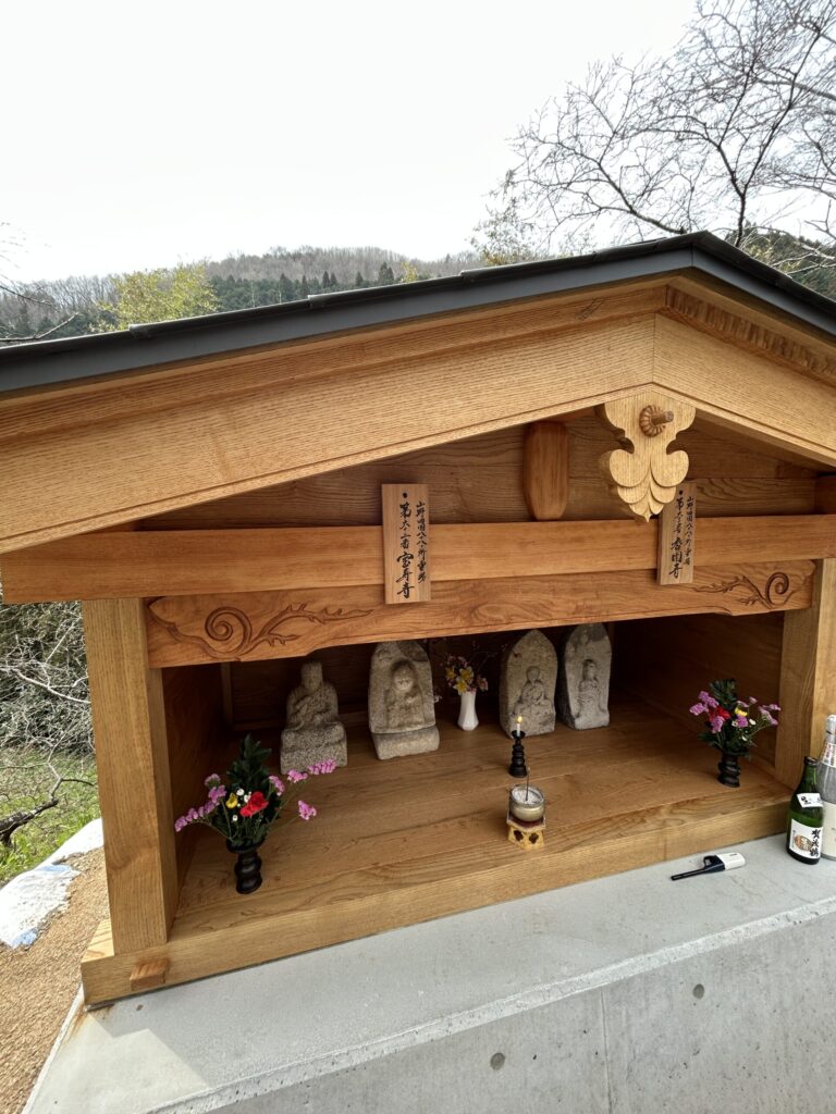 ご報告が遅くなりました。申し訳ありません。令和8年3月9日に、山野町池尻町内会の皆様のお力により第61番札所の香園寺と62番宝寿寺の堂を新たに移転し建立いたしました。この移転につきましては、道路拡張工事により、既存の堂の撤去に伴う移転と、住居裏に安置されていた札所を道路沿いに移転した経緯となります。